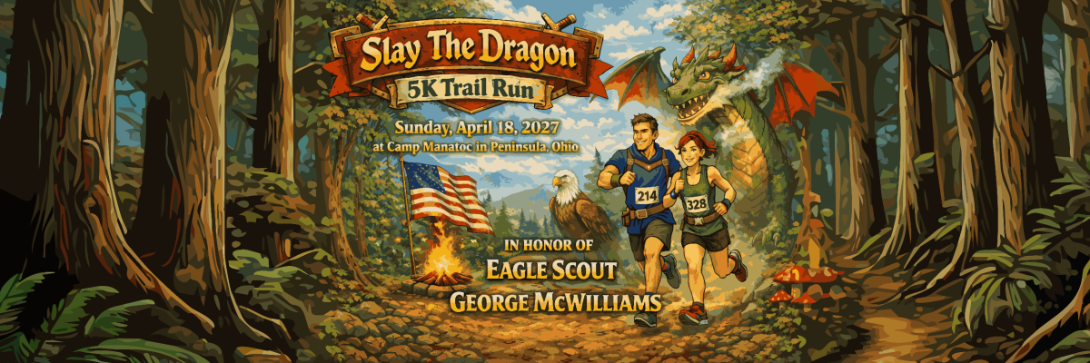 Join us for the Slay The Dragon 5K Memorial Trail Run, a special event celebrating the life and legacy of Eagle Scout George McWilliams. Runners and walkers of all ages are invited to take part in this meaningful and uplifting trail race.