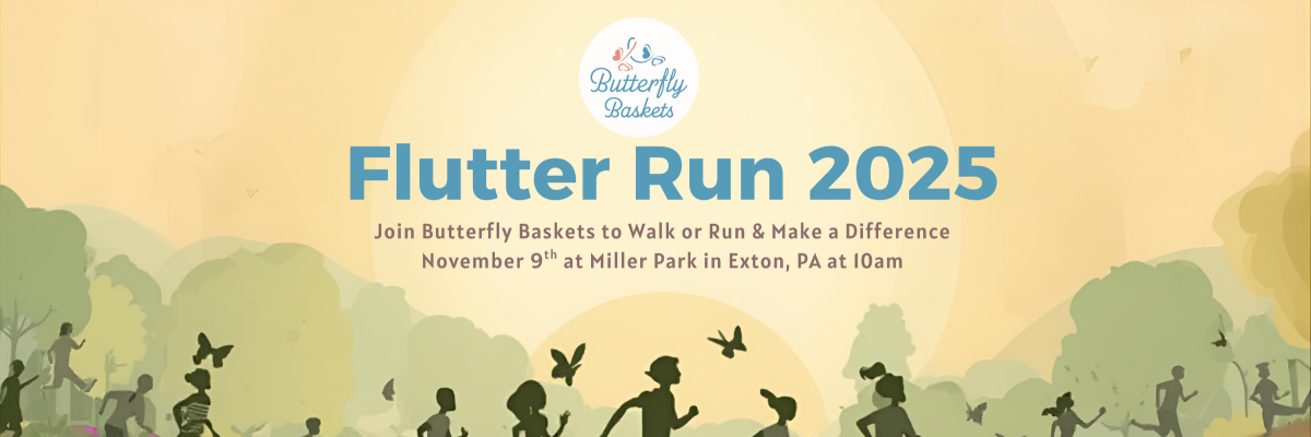 Join Butterfly Baskets for our sixth annual Flutter Run/Walk! We are excited to be hosting an in-person event this year as well as the virtual option. This is our biggest fundraiser each year and helps us to meet our mission and support our local community! We are doing things a little differently this year with a focus on the walk, untimed run and community event.
