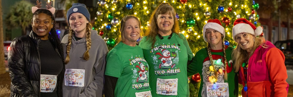 Join us for The Twinkling Two Miler in Myrtle Beach at the Winter Wonderland at the Beach. Participants are encouraged to run or walk along this 2-mile route beginning at Plyler Park featuring a spectacular lights display along the Boardwalk! This is a perfect event for your family to begin a new tradition of enjoying the beauty of Myrtle Beach during the holidays and get active at the same time! Enjoy a live DJ, hot chocolate and candy canes (Moe Moons) afterwards in the park! This is an untimed event and no awards will be presented. All participants will be entered into a raffle prize drawing!