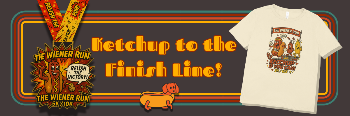 Includes a race tee, a finisher medal, and an exclusive “Tiny Wienie” pin.