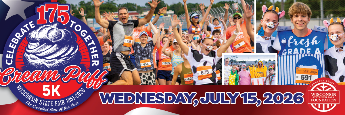 Run or walk to benefit the Wisconsin State Fair Park Foundation! This year, we are celebrating the 175th anniversary of Wisconsin State Fair and the 250th birthday of the United States! It's a historic year you won't want to miss!