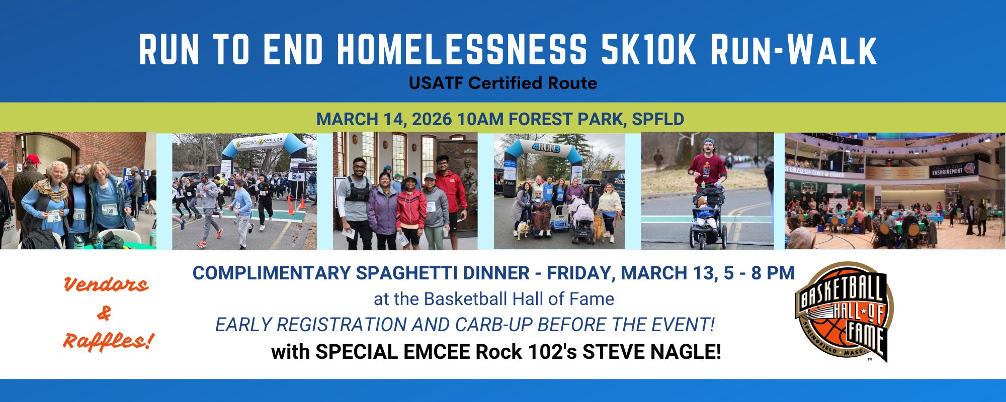 Join our Run to End Homelessness event in Forest Park, Springfield, MA on Saturday, March 14, 2026!