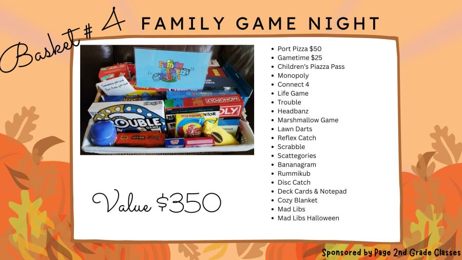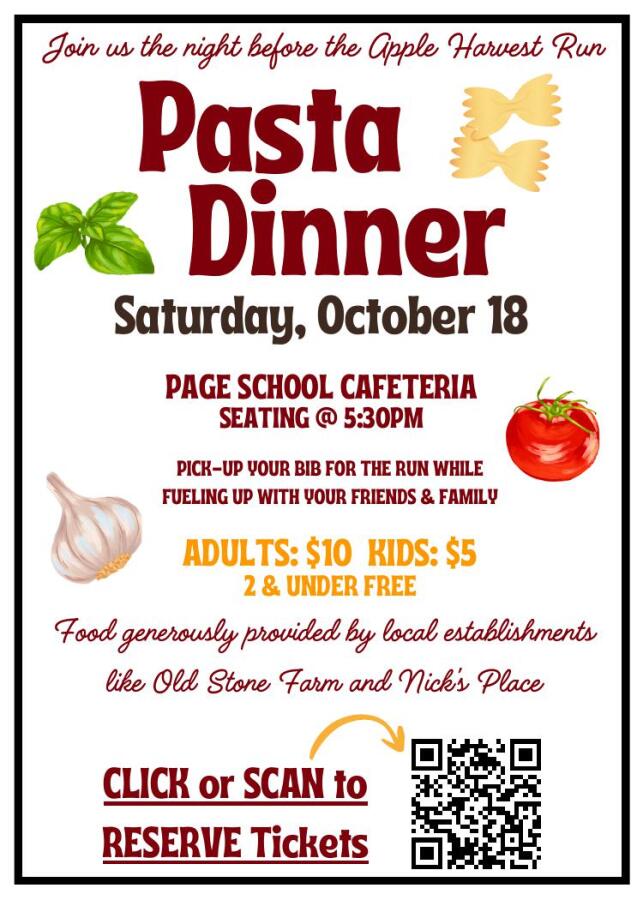 Seating is at 5:30pm in the Page School Cafeteria and Tickets are Adults $10, Kids $5, Kids 2 and under free.