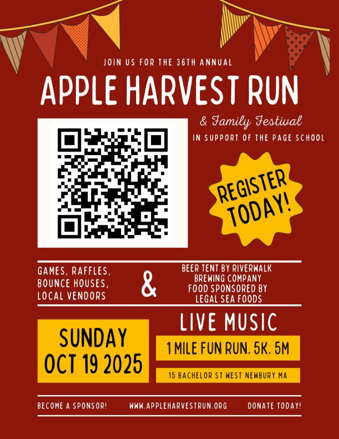 This year marks 36 incredible years of running, cheering, and making a difference in support of the Page School. Featuring a USATF-certified 5-mile and 5K race, plus a 1-mile fun run for kids, the Apple Harvest Run is more than just a race—it’s a celebration of community spirit and school pride!