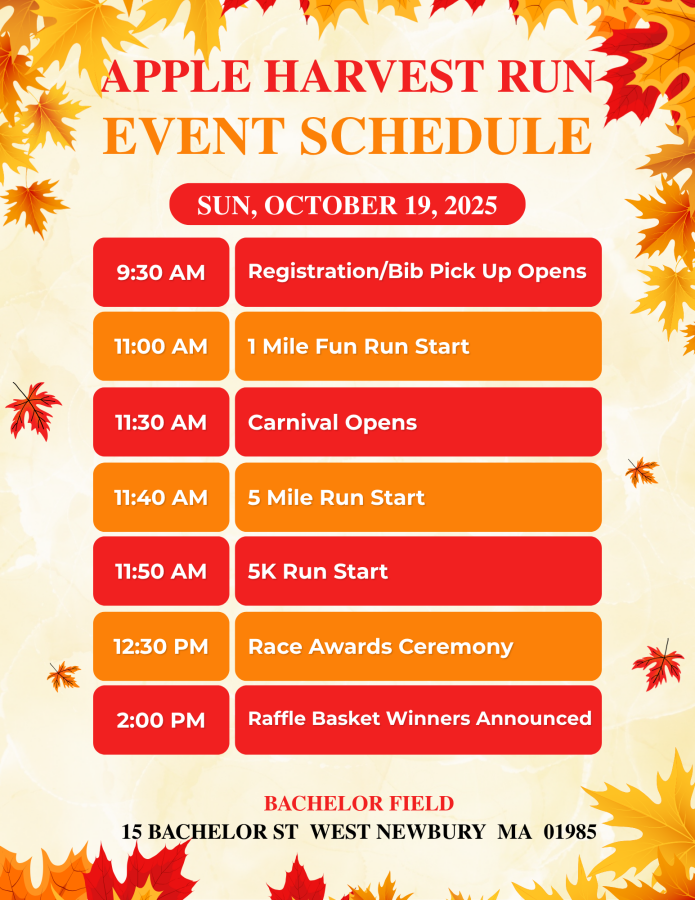 Get ready for one of the most beloved fall traditions in the region! The Apple Harvest Run returns to the scenic town of West Newbury, MA—just minutes from charming downtown Newburyport—for a day of community, fitness, and fun for all ages.