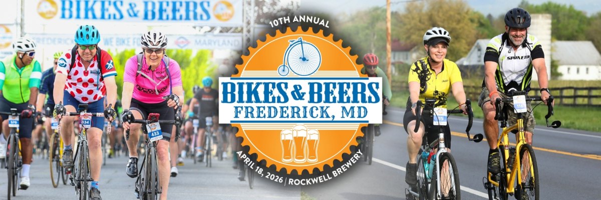 Register for Maryland's 10th Annual Bikes & Beers Frederick - Bike Ride & Beer Festival 2026, the premier cycling event series departing from Rockwell Brewery Riverside in Frederick, MD! Choose your challenge from a 15, 30, or 45-mile ride through the beautiful area of scenic urban and the picturesque surrounding rural area the route goes through, complete with morning fuel stations, fully marked routes, rest stops, and SAG support for all riding levels. Finish back at Rockwell Brewery for an unforgettable post-ride beer festival atmosphere, where you'll enjoy two complimentary craft beers in an official B&B pint glass, live music, food trucks, games, sponsor giveaways, and a massive charity raffle with over $3,000 in prizes, all while benefiting local cycling charities. Have fun and give back!