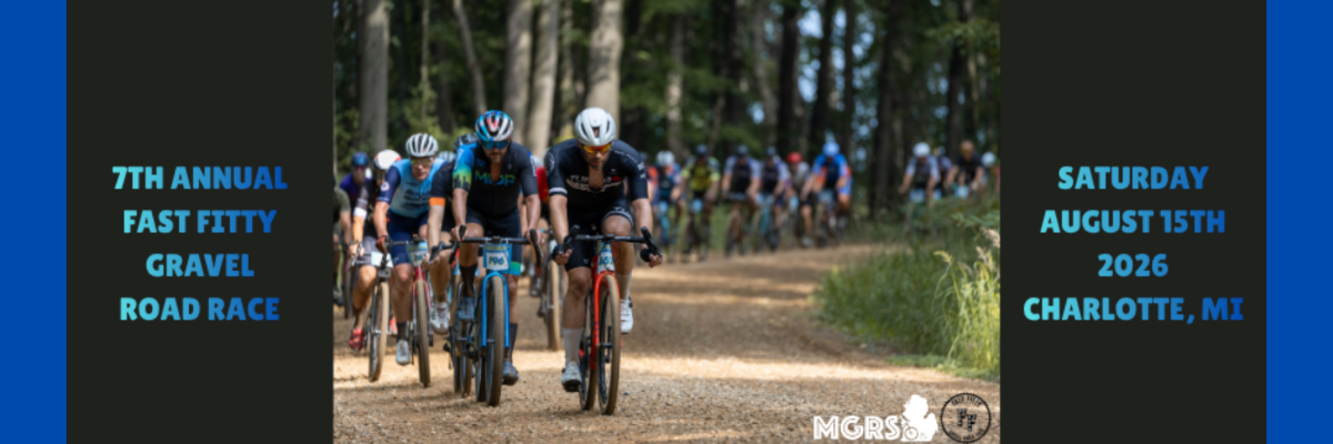 Fast Fitty is a classic gravel road race. While traversing Eaton and Barry counties, you’ll race along Lacey Lake and several country scenes on approximately 95% unpaved roads. You may choose from our 54, 36 or 19 mile routes, all are single loops. All post race proceeds donated to the House of Promise (Lansing, MI) for human trafficking victim rehabilitation.