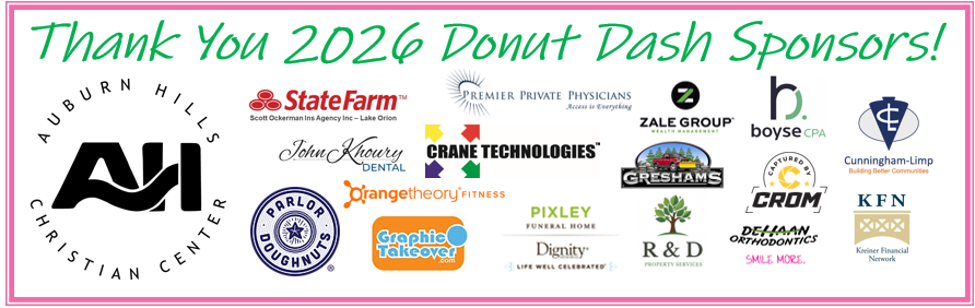 Young Life Donut Dash will take place within the beautiful Friendship Park in Lake Orion, Saturday May 16th, 2026. 5K Course &1 Mile Munchkin Fun Run