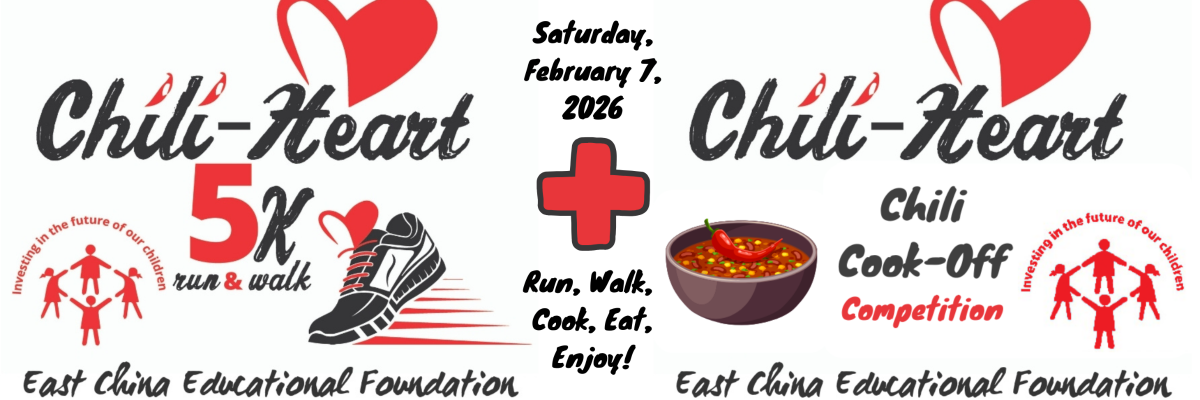 - FULL EVENT INFORMATION: The East China Educational Foundation proudly offers the 15th annual Chili-heart 5K run / 2 Mile walk on Saturday, February 7, 2026 - Registration 8:00-8:50am, race from 9:00am-10:30am. Additionally, the East China Educational Foundation is proud to add a CHILI COOK-OFF from 9:30am-11:00am, as part of the event.
