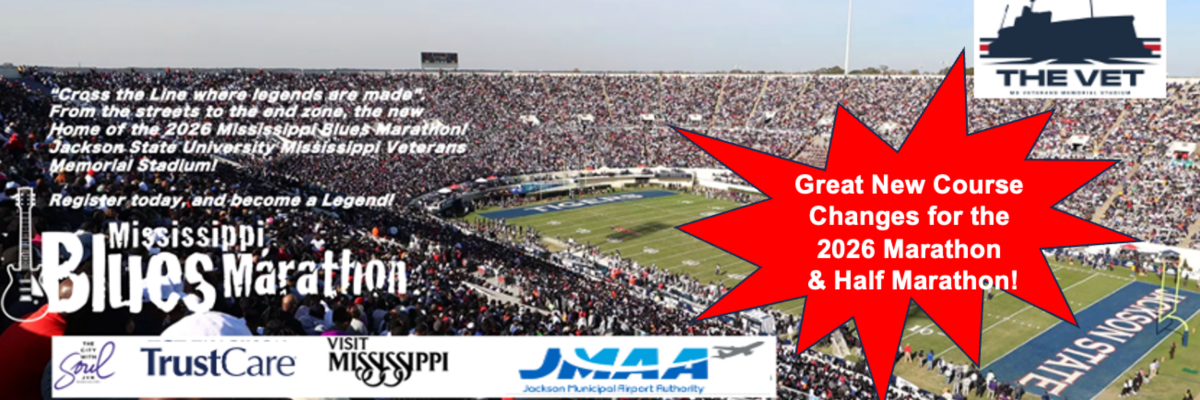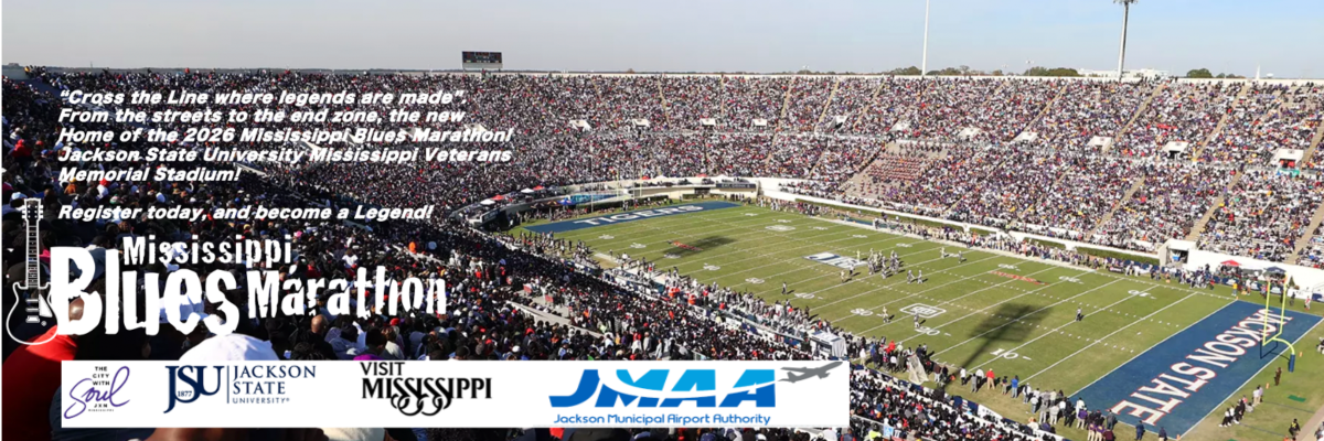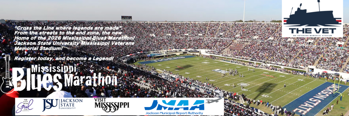 The 19th Edition of the Mississippi Blues Marathon will start and finish from our new home at Jackson State University Mississippi Veterans Memorial Stadium, 2531 North State Street Jackson, MS 39216