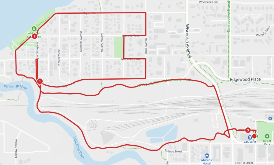 COURSE: The Whitefish Turkey Trot is now in downtown Whitefish, with a slightly different route for 2025. The 5K course will start and end outside of the O'Shaughnessy Center. Participants will follow the bike path through the tunnel under Baker Ave and immediately make a hard left turn to go up and over the viaduct. Trotters will then follow the bike path to the four-way intersection and head right toward Washington Avenue. A sharp 180-degree turn will put trotters onto Edgewood Place. They will follow that road until taking a left on Iowa Ave. The a left onto Woodland Place, right on Minnesota Ave, right onto Waverly Place and left on Iowa will bring participants to Skyles Pl. Trotters will go down Skyles to City Beach, up Oregon Ave., and onto the bike path alongside the Whitefish River back to Depot Park.