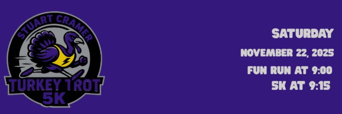 IMPORTANT: Due to an unforseen conflict this 5k and Fun Run have been rescheduled to November 22 (11/22). We hope you can join us for the Stuart Cramer Turkey Trot!