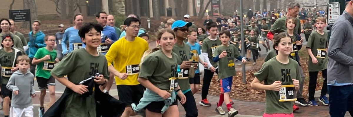The CHCCS school with the most registered participants will become the proud owner of the golden sneaker trophy! Join friends and teachers to cheer for your school's mascot in the historic and memorable Mascot warms up and lap around McCorkle Place at 8:00 am. Run or walk past our school's designated cheer station and wave and show school spirit!