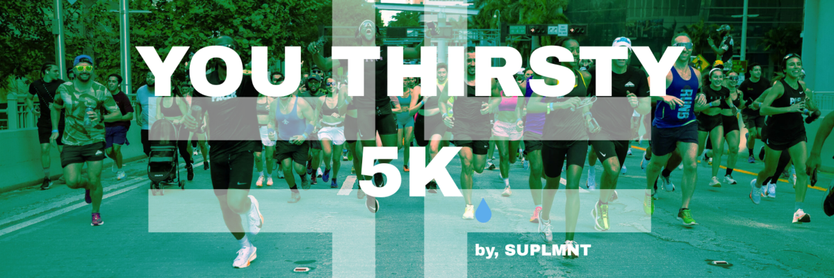 Every registration is part of our Buy One, Give One initiative. When you sign up, you’ll receive a custom limited-edition "YOU THIRSTY 5K" SUPLMNT bottle, and a SUPLMNT bottle will also be donated to a youth through our community partners — helping support the next generation on their hydration journey.