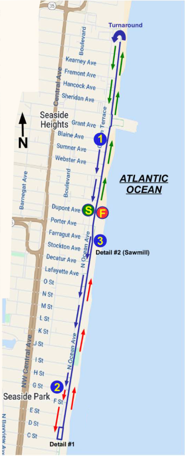 Seaside Heights 5k for Pizza Course starting & finishing near Beachcomber Bar: