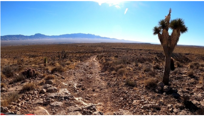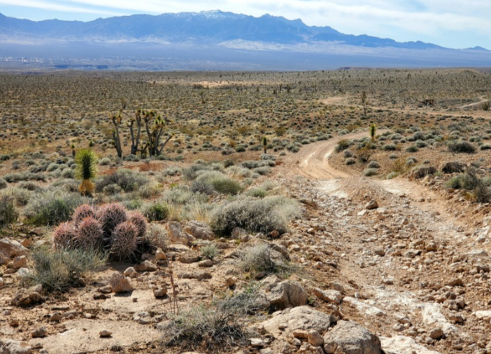 - Turn left toward Stateline ~2 mi, then right along power line 1.9 mi, right 0.3 mi, left to water stop at mile 13.8 (36.96749, -114.00545).