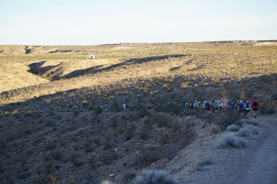 - Mile 1.9: Oasis aid station (36.84685, -114.00539).