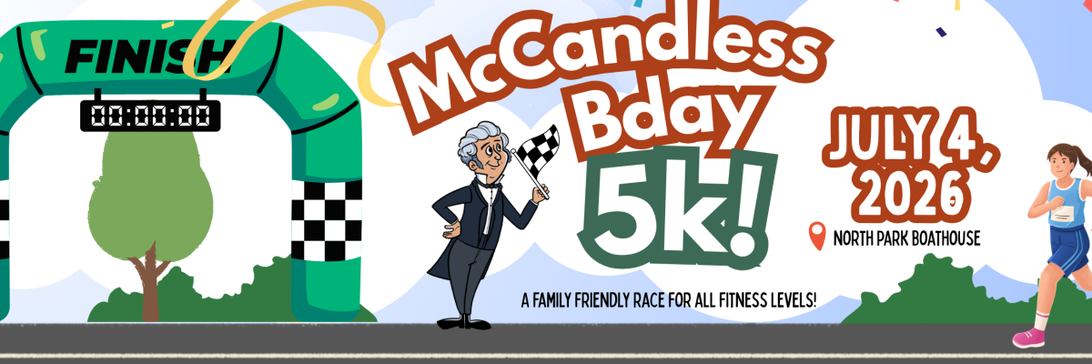 Early bird registration opens on March 11 for the July 4th Bday 5k! Join us at North Park’s Boathouse for a family friendly 5k run/walk, 1-mile run/walk and kid’s dash. We’ll be celebrating two birthdays- America and McCandless!