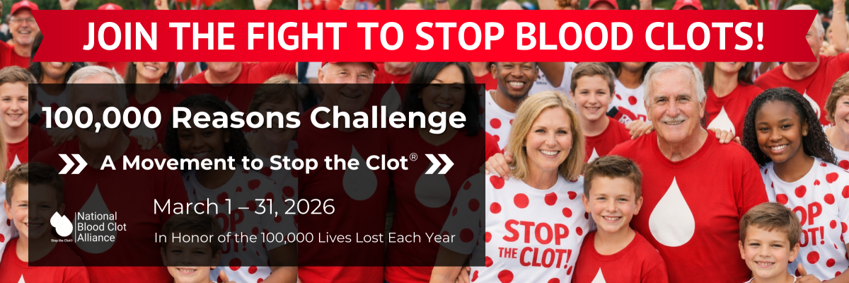 Join the 100,000 Reasons Challenge and be part of a national movement to honor the 100,000 lives lost to blood clots each year.