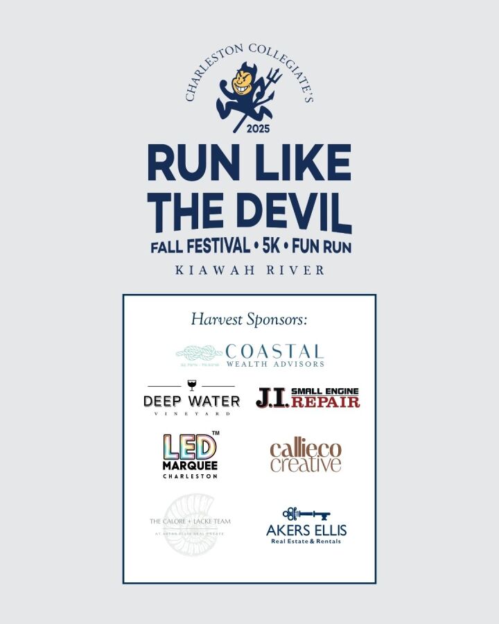 Check-in for the Run Like the Devil race opens at 9 a.m., with the 5K Trail Run starting at 10 a.m. and the Fun Run at 12 p.m. All proceeds support the Charleston Collegiate School’s annual fund. Pre-registration is required to participate in the Run Like the Devil 5K and Fun Run. Register by October 3rd to secure your t-shirt! Registrations received after October 3rd are not guaranteed a t-shirt.
