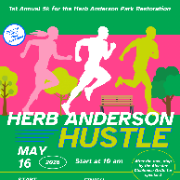 Join us for the Herb Anderson Hustle 5K run/walk on May 16! This fun, family-friendly event celebrates fresh air, movement, and community while raising funds to support improvements to our local park. Whether you're chasing a personal best or simply enjoying a walk with friends and family, every step you take helps our park flourish.