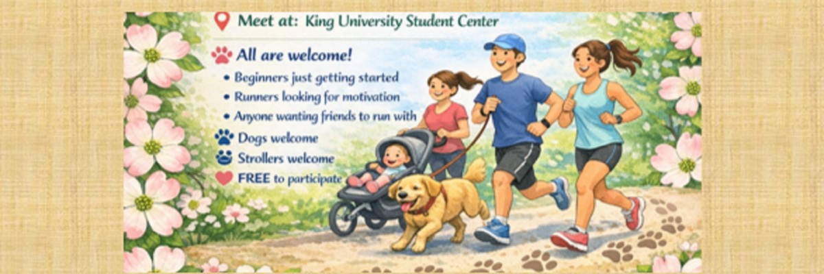 Let's bloom into spring, one step at a time! 8 week free program designed to help runners and walkers prepare for the Dogwood Dash 5K on April 18th. The program starts on February 24th and meets every Tuesday and Thursday at 5:15 pm, King University Student Center. All are welcome, from beginners who are just getting started, to runners who are looking for some motivation, or those who just want some friends to run with. The program will provide group leaders to help you along the way. Dogs & strollers are welcome.