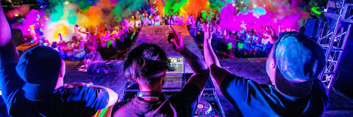 Starts 45 minutes before the race. This is the best pre-party in the country. Music to blow you away and a chance to get a ton of free glow gear and GLOW POWDER given away at the stage!