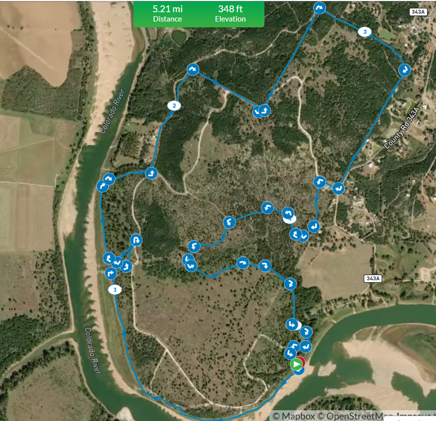 - Distance: 62.2 and 31.1 miles (looped course design on trails and along the river)