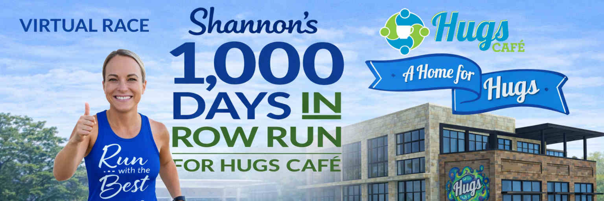 This virtual run marks my 1,000th consecutive day of running, and I can’t think of a better way to celebrate this milestone than by giving back to a place that means so much to me—Hugs Café.