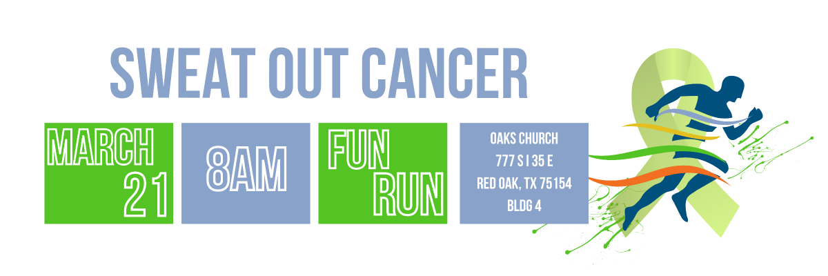 Join us on Saturday, March 21st at 8:00 AM at The Oaks Church for the 2nd Annual Sweat Out Cancer Fun Run—a high-energy, family-friendly event in honor of those battling cancer. Whether you're walking, jogging, or racing, every step brings strength and support to their journey.