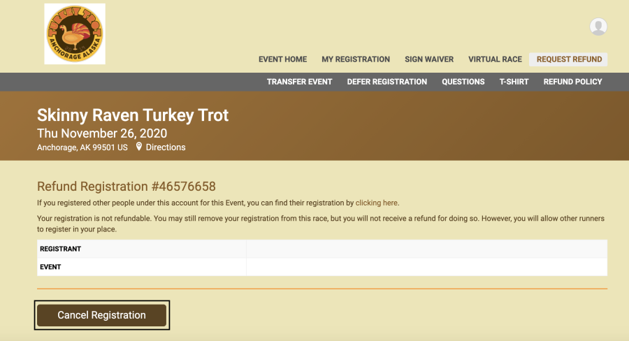 How to request a refund for your 2020 Skinny Raven Turkey Trot registration