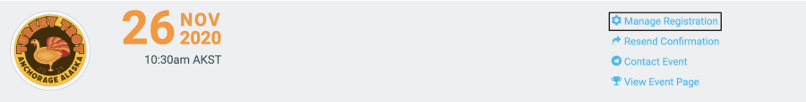 Step 2: In your Upcoming Events find the Skinny Raven Turkey Trot and select "Manage Registration".