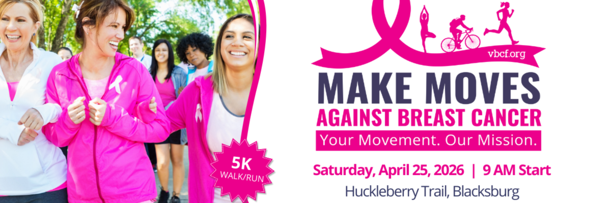The Western Region 5K Walk/Run is a signature community event within the Make Moves Against Breast Cancer (MMABC) statewide campaign. Held on the scenic Huckleberry Trail in Blacksburg, this event brings together individuals, families, and local organizations to make moves in the fight against breast cancer.