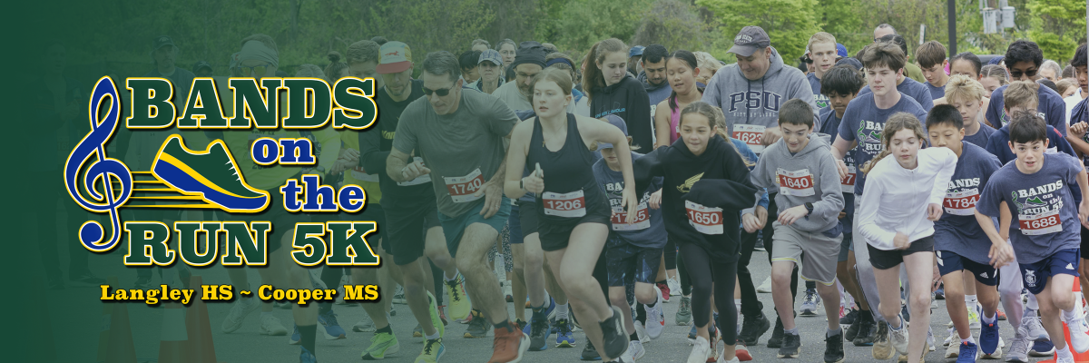 Join the band directors from Langley HS and Cooper MS, students, families, and the community on Sunday, April 26 for our annual Bands on the Run 5k, starting at 8:00 a.m. Run the race like a pro or walk the course with a friend! The race begins at Langley High School (6520 Georgetown Pike, McLean, VA 22101), winds through the neighboring community of Langley Oaks, and finishes back up at the high school.