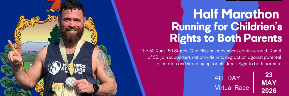 This race is part of a larger effort to run 50 half marathons in 50 states, completing one race each month. Each run is dedicated to raising awareness about parental alienation, family court practices that separate children from a loving parent, and the urgent need for children to have reasonable access to both parents.