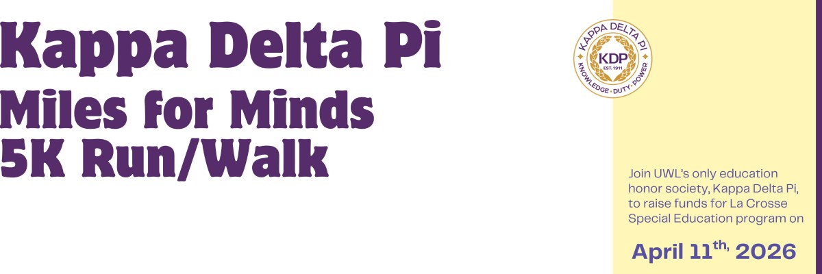 On April 11th, 2026 Kappa Delta Pi is hosting our 1st annual Run/Walk, “Miles For Minds” benefitting the La Crosse Area School District’s Special Education program.