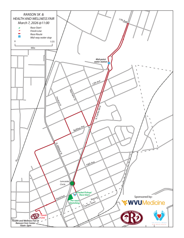 The Ranson Race 5K and Health & Wellness Fair is a community-centered event designed to promote health, wellness, and family fun in Ranson, West Virginia and the surrounding region. The event brings together runners, families, local businesses, and community members for an energizing morning in support of community wellness initiatives. The Ranson Race 5K will begin at 11am and finish at the Ranson Civic Center where our annual Health & Wellness Fair will be in full swing.