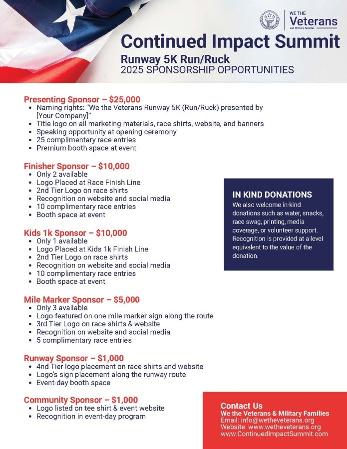 Have questions please email info@wetheveterans.us to explore sponsorships, custom packages, or in-kind donations.