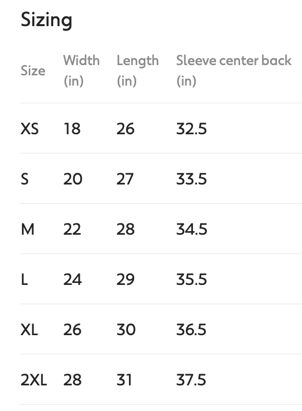 2026 Hoodie Size Chart