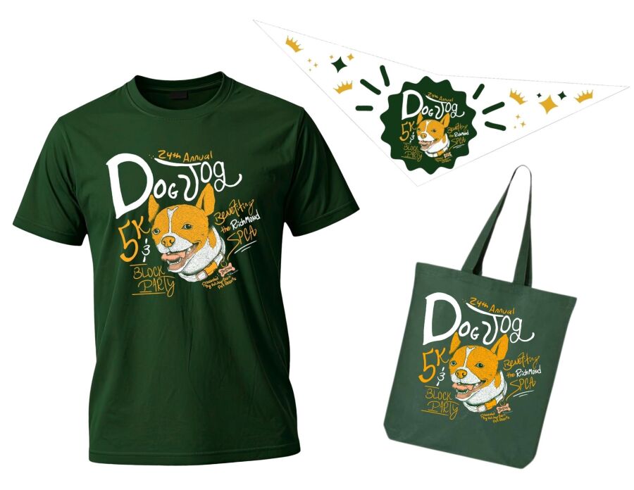 Show off this year’s merch—designed by graphic designer Chad Hillmore, featuring Irving, the Richmond SPCA’s 2025–2026 mascot! You and your furry best friends can sport these Dog Jog favorites, and every purchase benefits pets at the Richmond SPCA.