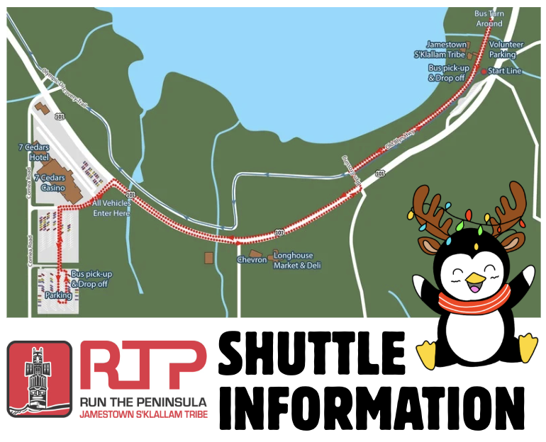 The 5K and 10K will start at dusk, approximately 4:30 pm on Saturday, December 6th at the Jamestown S'Klallam Tribe. All of Jamestown lights will be shining bright and on display during the run.